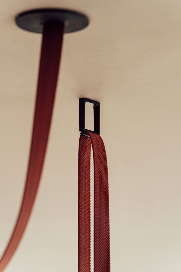 Diseñado por Stefan Diez, Plusminus introduce un concepto radical: una cinta textil conductora que integra la electricidad en su propia materialidad, permitiendo fijar luminarias en cualquier punto mediante un sistema “click & connect”.