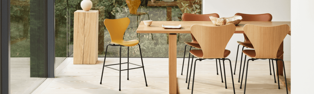 El mobiliario Serie 7™ de Fritz Hansen es un icono en la historia del mobiliario moderno, diseñado por Arne Jacobsen en 1955. Su forma única es atemporal e increíblemente versátil, con un carácter distintivo y elegante.