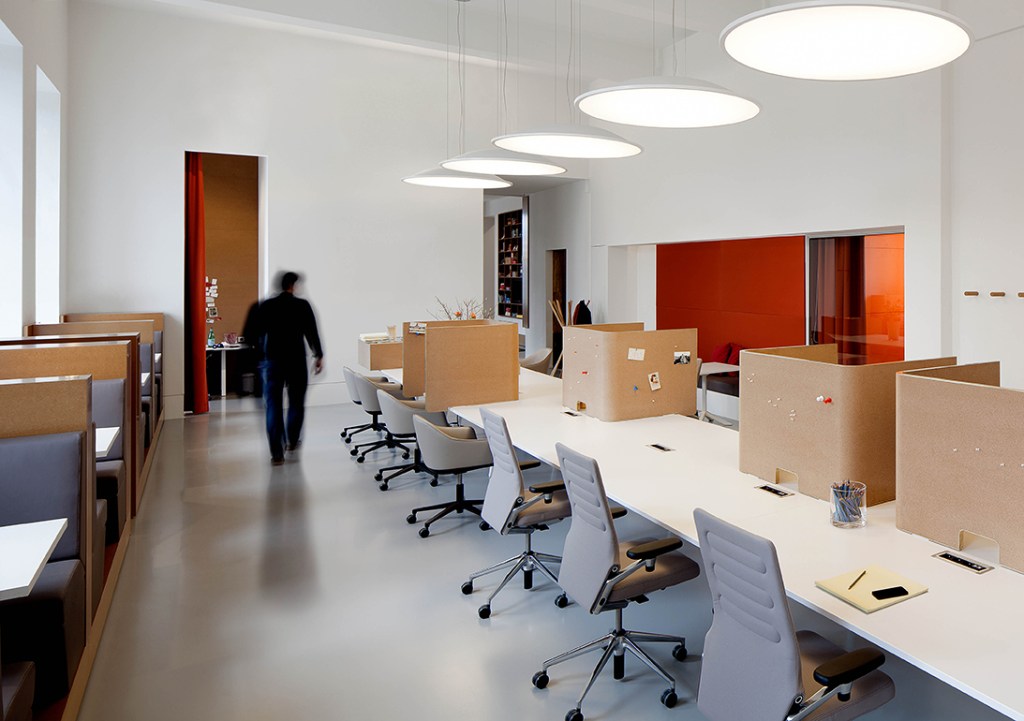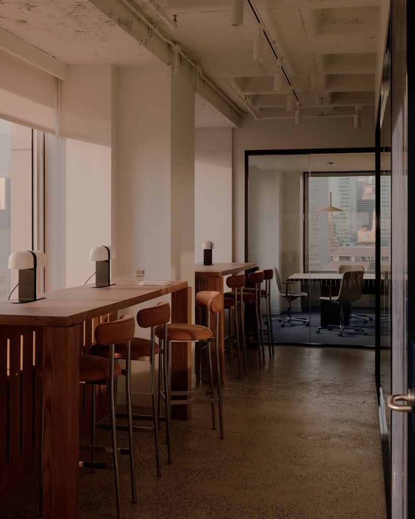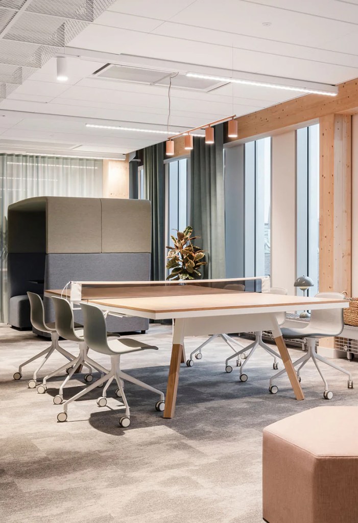 Diseñamos espacios corporativos donde la iluminación y el mobiliario responden a dinámicas reales de trabajo.